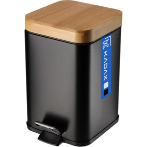 Afvalbak van gepoedercoat staal - emmer met bak en voetpedaal, afvalemmer met automatische sluiting, vuilnisemmer met bamboedeksel - Zwart en Wit, 3L en 5L - KADAX