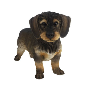 Geef deze levensechte ruwharige teckel een thuis! Deze natuurgetrouwe teckel van Esschert Design geeft je huis een vleugje vreugde en je kunt het hondenbeeld zowel binnen als buiten plaatsen. Het beeld is gemaakt van polyresin.