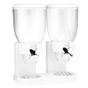 De dispenser is voorzien van een transparante behuizing met een doseergedeelte en twee 3,5-liter acrylbakken waarin een breed scala aan voedsel kan worden opgeborgen. De gewenste keuze krijgen is gemakkelijk, draai aan de hendel en laat het voedsel in je schaaltje eronder vallen. Geen lege en individuele verpakkingen meer in je kasten, maar een mooie, ruimtebesparende en handige dispenser!
