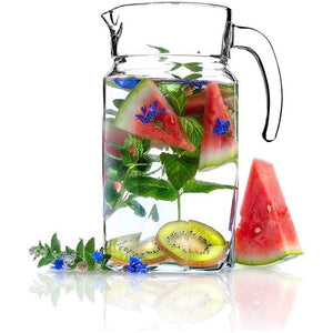 • De kan beschikt over een dikke bodem en is altijd massief, daarom bewijst hij zich niet alleen bij de lunch thuis, maar ook op een feest buiten of tijdens het barbecueën. Het product bestaat uit stevig glas, dat bestand is tegen stoten en schokken, waardoor de dranken veilig zijn. De comfortabele, goed in de hand liggende handgreep zorgt voor extra bescherming, waardoor je dranken, water en limonade probleemloos kunt ingieten.