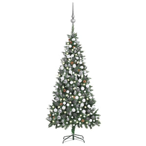 Deze kerstboom lijkt op een echte dennenboom en heeft levensechte puntige takken met witte glitters op de punten, wat hem een zeer vol uiterlijk geeft. Deze prachtige kerstboom is lichtgewicht en duurzaam. De takken en dennenappels kunnen in elke gewenste richting worden geschikt. Deze kerstboom kan elk jaar opnieuw worden gebruikt, waardoor hij een zeer voordelige keuze is in vergelijking met een echte kerstboom. Hij heeft ook een ijzeren basis voor stabiliteit. De kunstkerstboom is uitgerust met energiezuinige LED-verlichting waardoor hij prachtig verlicht wordt en een fijne kerstsfeer creëert. Deze kerstboom, versierd met een prachtige piek en kerstballen, is de blikvanger in je huis.