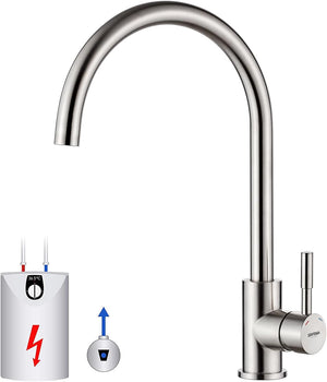 Deze zilveren keukenkraan is staat leuk in de keuken en is uitermate praktisch. Deze kraan is uitgerust met drie aansluitslangen en eenvoudig zelf te installeren met de meegeleverde instructies. Wordt geleverd inclusief accessoires en slang.