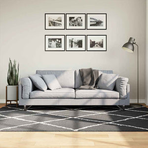 Vloerkleed Shaggy Hoogpolig Modern Zwart En Crème